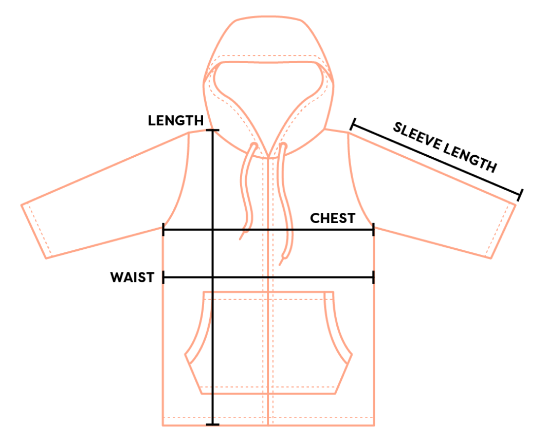 Hoodie Length is measured from the top of the shoulder straight down to the bottom hem.